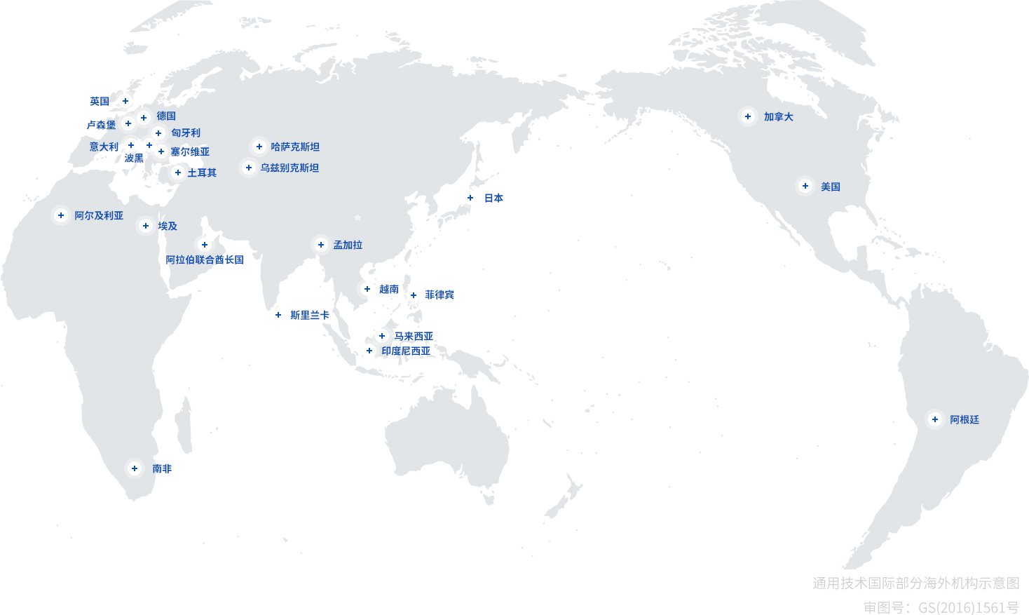 國際通用 通用技術(shù)國際致力于服務(wù)全球市場,在世界范圍內(nèi)廣泛尋求合作,構(gòu)建了覆蓋面廣、反應(yīng)迅速的國際市場經(jīng)營網(wǎng)絡(luò),公司業(yè)務(wù)遍布五大洲的100多個國家和地區(qū)。